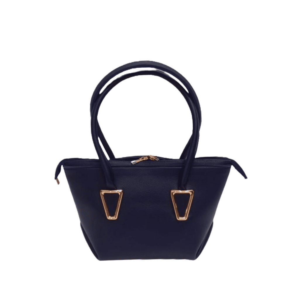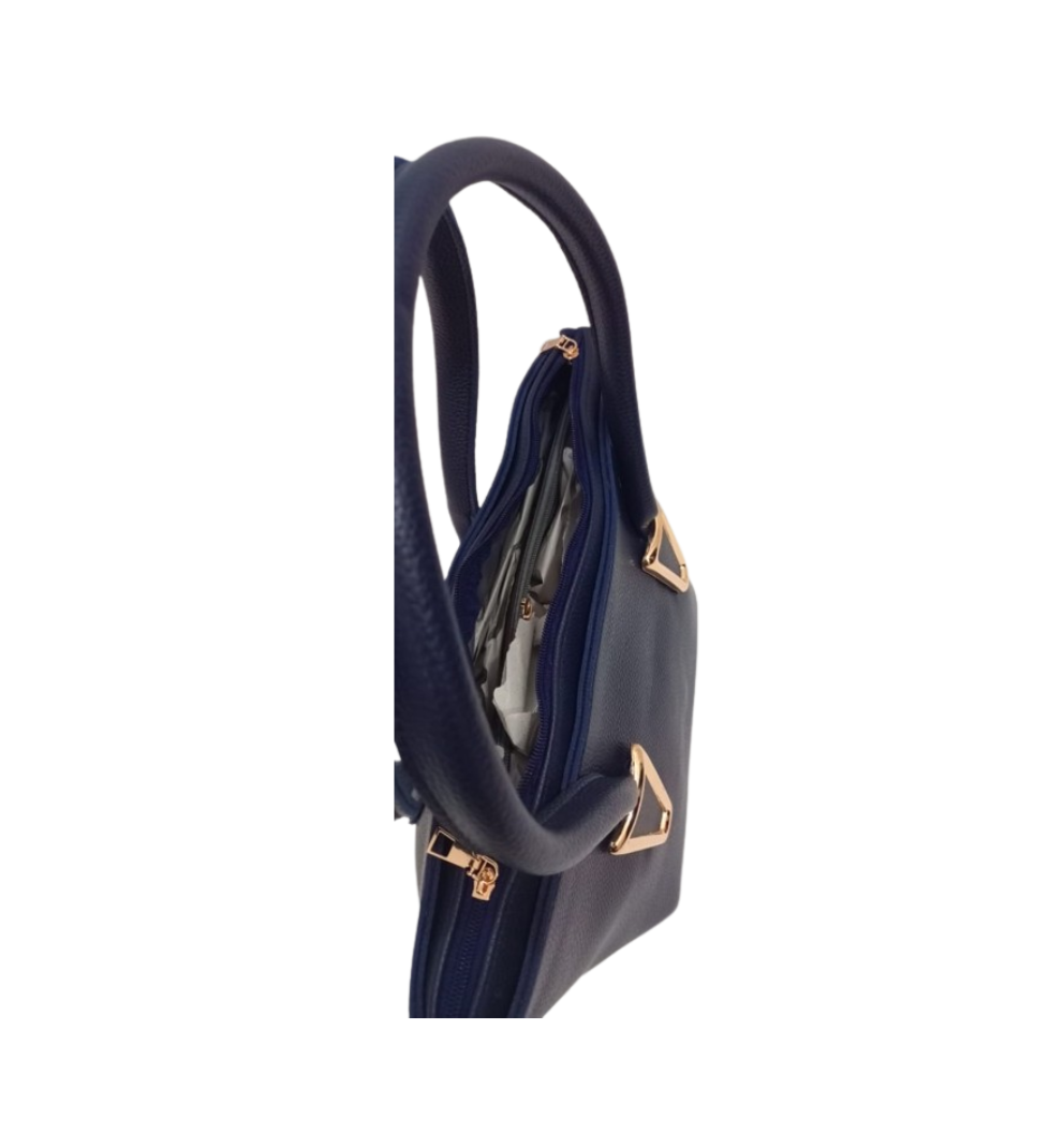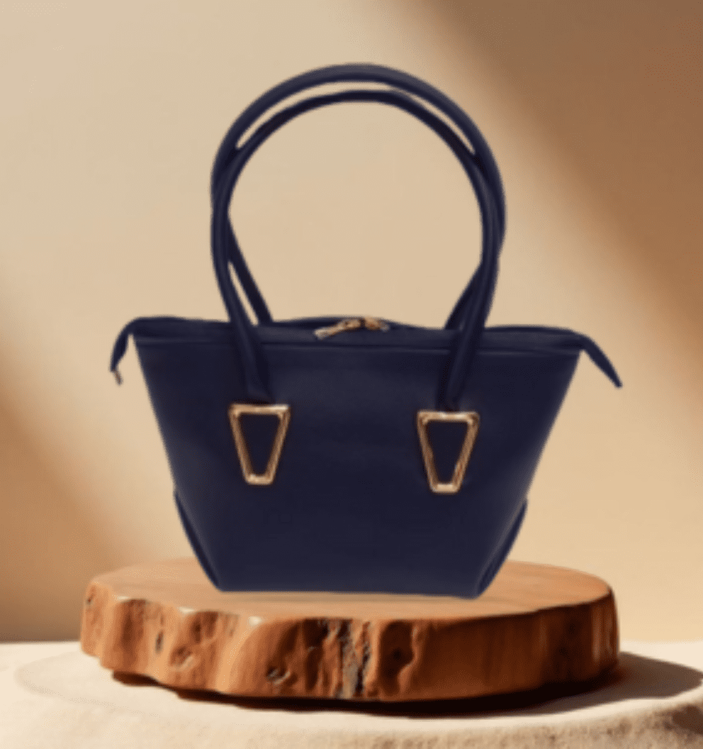 Enhance your everyday style with this elegant navy blue premium PU leather handbag, crafted for the modern woman who values both fashion and function. Made from high-quality artificial leather, this handbag offers a refined texture, smooth finish, and lasting durability. The classic structured shape is highlighted by gold-tone triangular handle accents, adding a touch of sophistication to your look.
